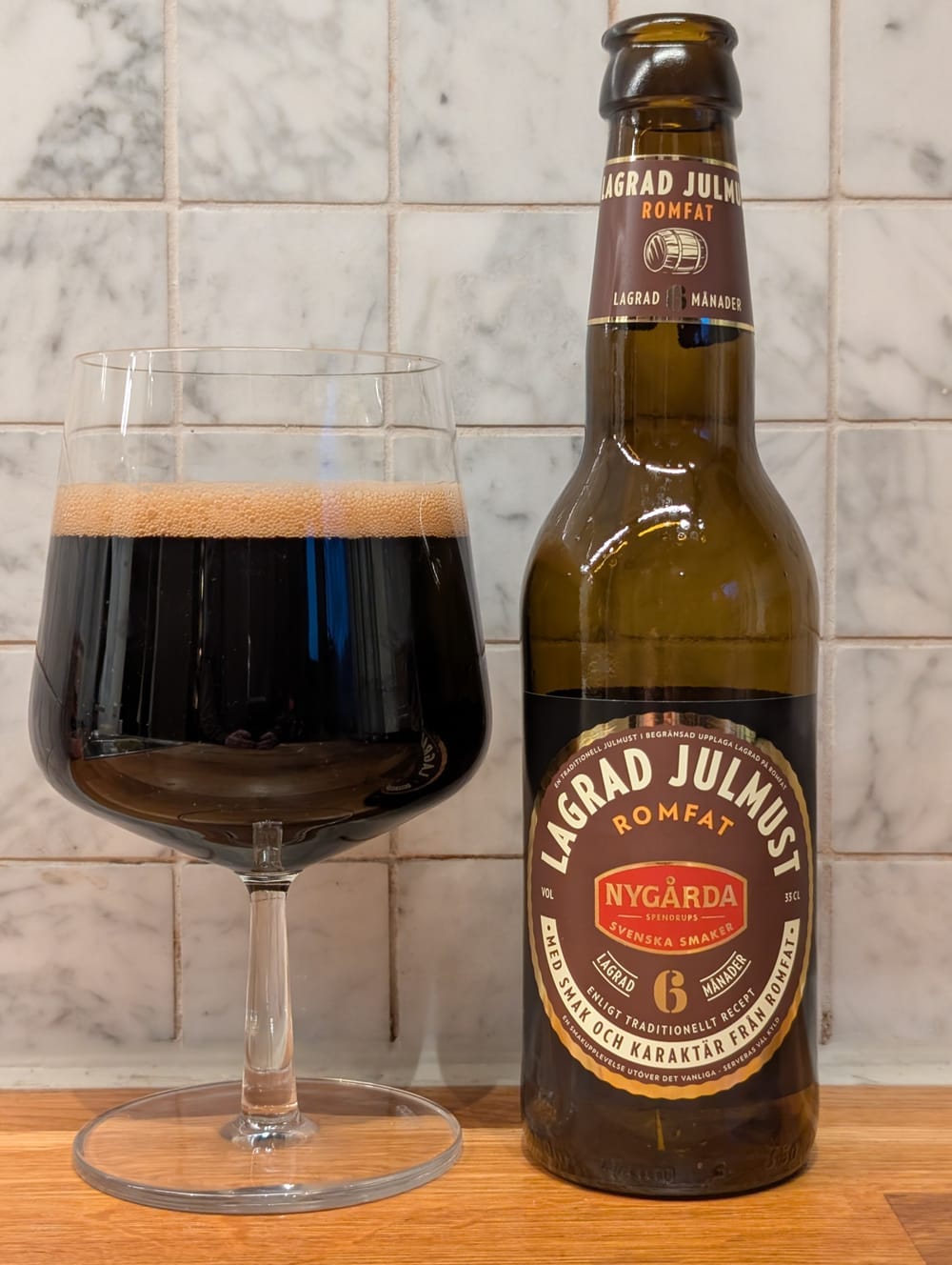 Nygårda Julmust lagrad på romfat är trevlig och välgjord. Bra fyllighet och kropp, romfatet ligger subtilt i bakgrunden men är nära att ta över.