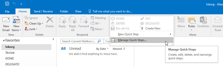 Använd sedan genvägarna i menyn för att börja sortera dina mejl. Fortsätt tills inkorgen är tom.