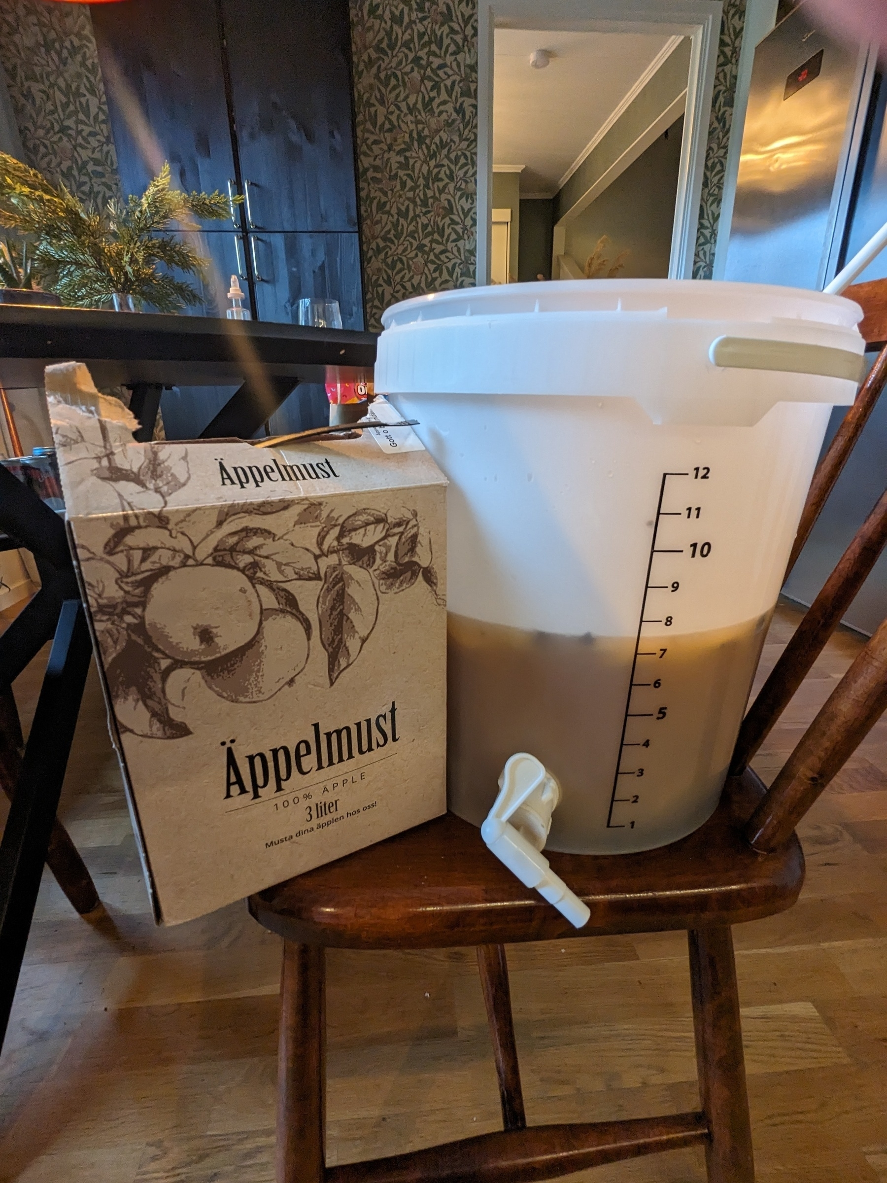 Blanda allt i en 10-litershink, täck med plastfolie med små hål, och låt stå i rumstemperatur i minst tre veckor – gärna sex. Buteljera med hävert (undvik bottensatsen!) och sen är det bara att värma och njuta.